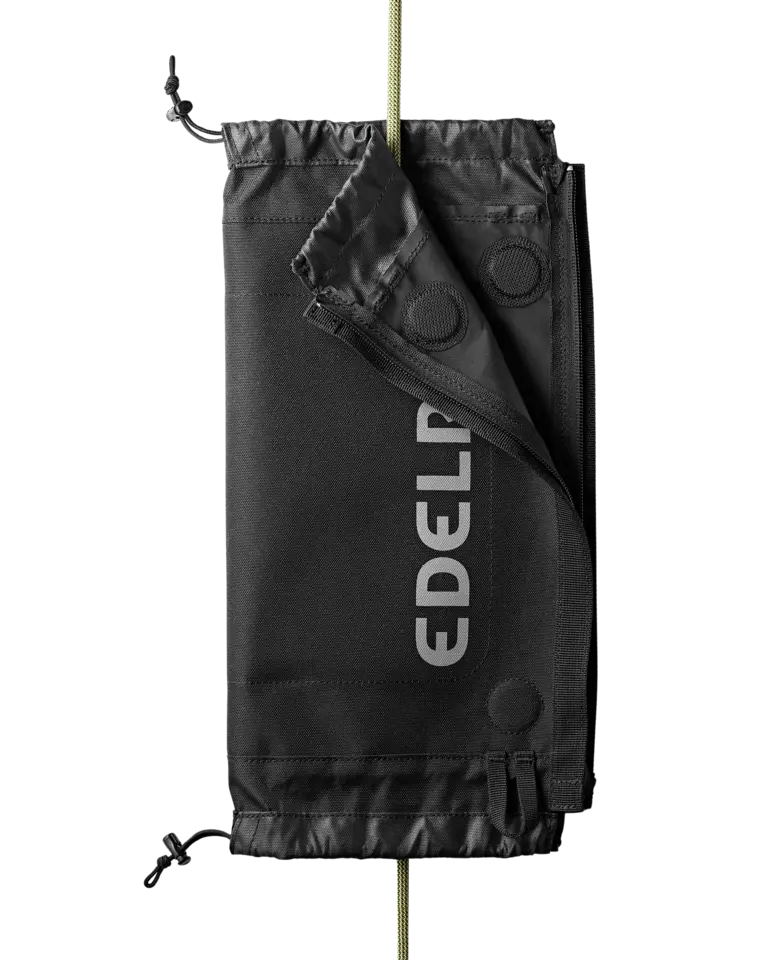 Der Stoff aus einem Materialmix aus Hypalon und Tarpaulin ist sehr robust und schützt das Seil effektiv vor Schnitt- und Scherbelastungen. Durch den Reißverschluß kann die RAPUNZEL ROPE PROTECTION entweder als Matte oder Schlauch genutzt werden und zusätzlich mit weiteren ihrer Art verbunden werden, um größere Flächen zu schützen. Vier textile Schlaufen und vier starke Magnete bieten diverse Möglichkeiten zur Befestigung an Elementen sowie auf Metalluntergründen wie beispielsweise Containern. In der Verwendung als Materialtasche kann die RAPUNZEL ROPE PROTECTION dank der Kordelzüge beidseitig befüllt beziehungsweise genutzt werden.