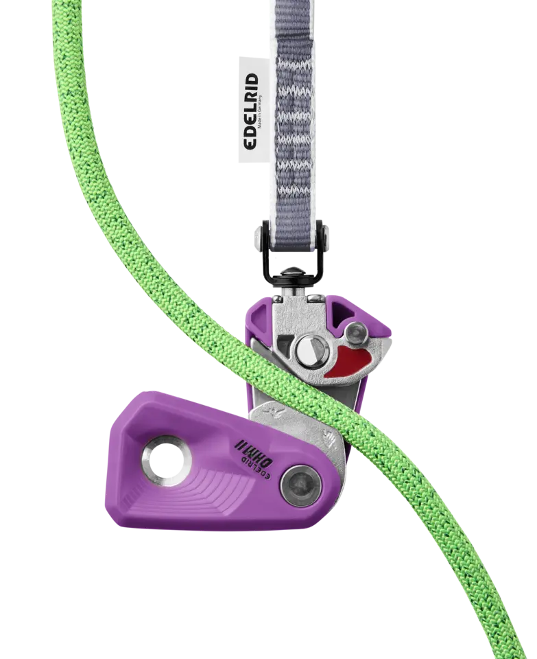 The second generation of our innovative and successful OHM is easier to use than ever thanks to a number of updates. The assisted-braking resistor for increasing the braking effect when climbing in rope teams with major weight differences has a swivel joint that improves the device’s freedom of movement. As a result, the clipping direction no longer matters when the device is clipped to the first bolt. The locking system prevents the device from opening accidentally and makes it far easier to insert the rope and remove the device when lowering.