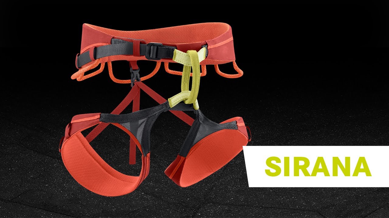 - Five gear loops, two attachment options for ice screw clips, and a chalk bag loop at the back