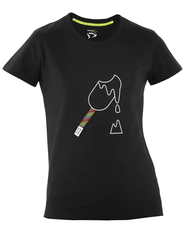 Ein Muss für alle Kletterinnen und andere Bergsportlerinnen. Das unverwechselbare Design besteht aus Seilresten aus firmeneigener Produktion und das T-Shirt selbst aus reiner Biobaumwolle.