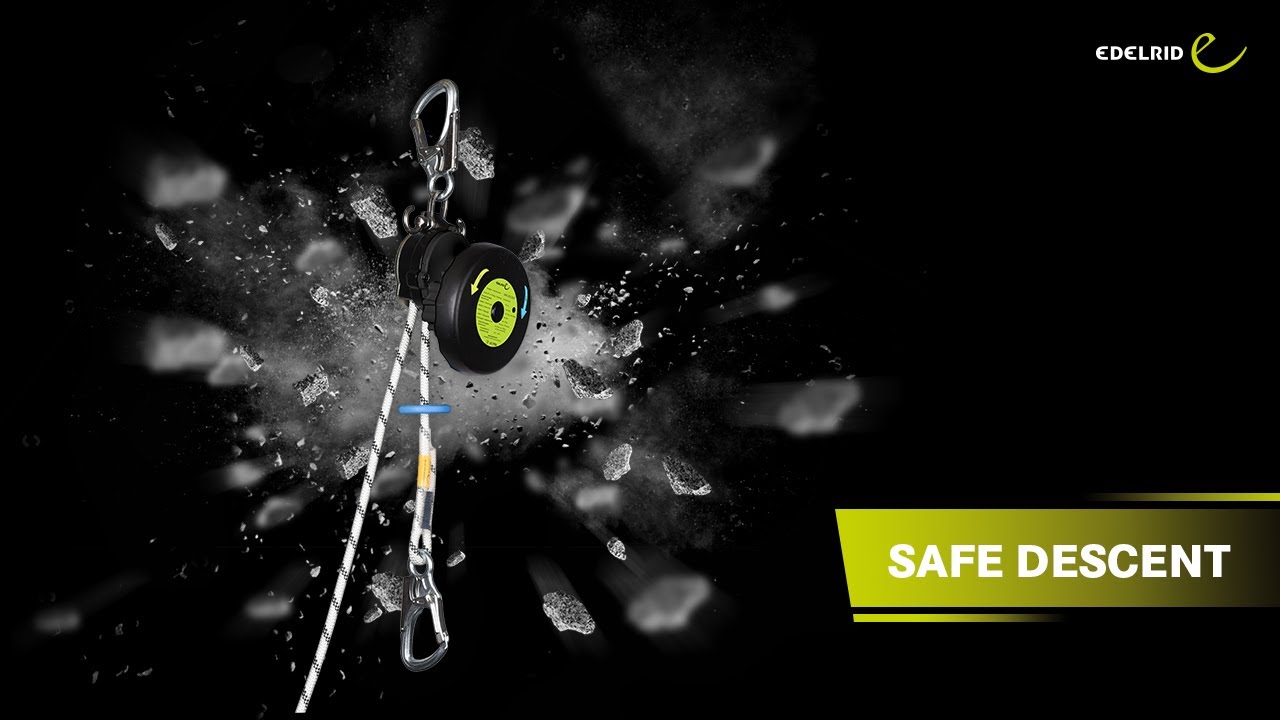 The Safe Descent is an innovative descent and rescue device with a winch function—ideal for prolonged use in adventure parks and training centers. The combination of the patented backstop and the hand wheel makes it quick and easy to rescue accident victims. The winch function makes it possible to relieve the strain on the safety chain and transfer forces to the Safe Descent in order to enable safe lowering.